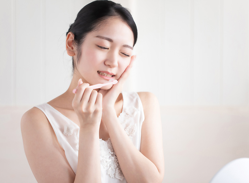 マッサージ表情筋・咀嚼筋をお顔の表面と内側からケアすることで血行促進、若々しく導く効果が期待出来ます。食いしばりの強い方に起こりやすい肩・首コリの解消も考えたケアになっておりますので、施術後はお顔も体もスッキリ。