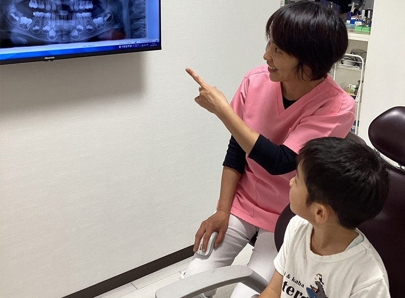 当院ではお子さんのお口の定期検診の際に、顎の成長や歯並びの状態など、顎全体を含めたお口の状態を診察しています。
